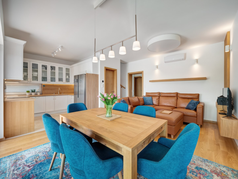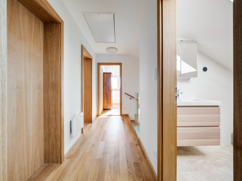 - burkolatok : tölgy szalagparketta, kerámia a vizes helyiségekben