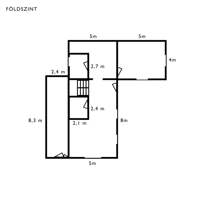 Helyiségei: a földszinten egy 40 m2-es konyha, nappali és étkező, egy gépészeti helyiség, egy fürdőszoba+WC. amely egy olyan, még választható funkciójú helyiségből nyílik, ahol egy szauna elhelyezéséhez alkalmas 3 fázisú villany kiépítésre került. A földszinten egy 20 m2-es, majdani moziszoba előkészítése is megtörtént.