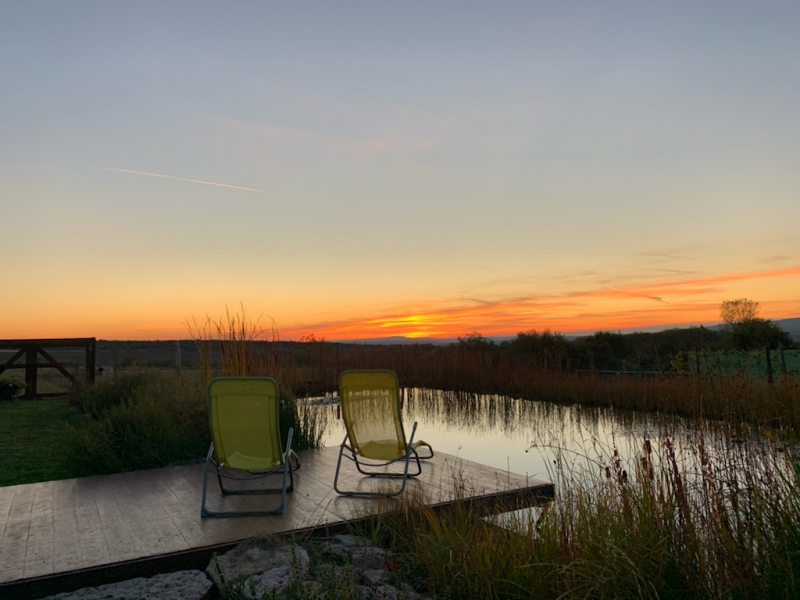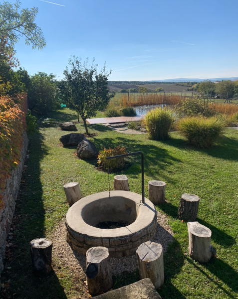 A terület 340 m tengerszint feletti magasan fekszik, a kertből csodálatos örök tájpanorámában és páratlan naplementékben gyönyörködhetünk Kab-hegy felé.