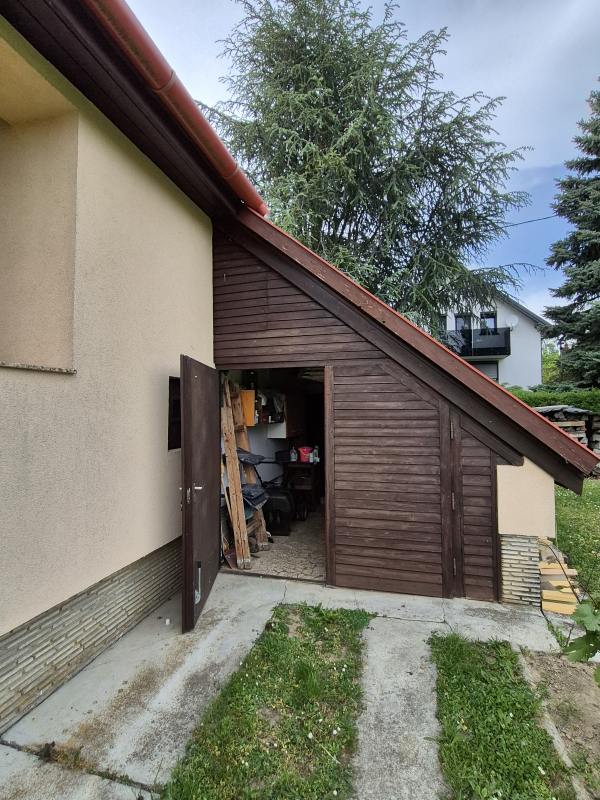 Helyiségei: a földszinten egy amerikai konyhás nappali és egy kádas fürdőszoba került kialakításra. A nappaliba a 14,4 m2-es déli tájolású teraszról lehet belépni. A tetőtérben 2 hálószoba található, az egyik erkélykapcsolatos. A külön külső bejárattal rendelkező 10 m2-es tárolóból (korábban garázs volt) közelíthető meg a 14 m2-es, ablakos pince, amely tökéletes megoldást nyújt a kertben termő gyümölcsök tárolására.