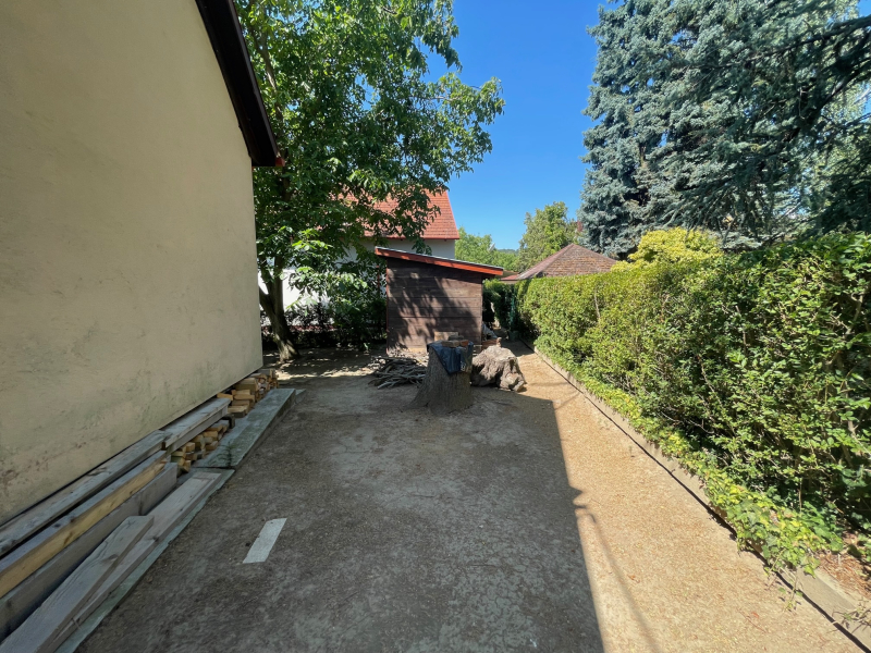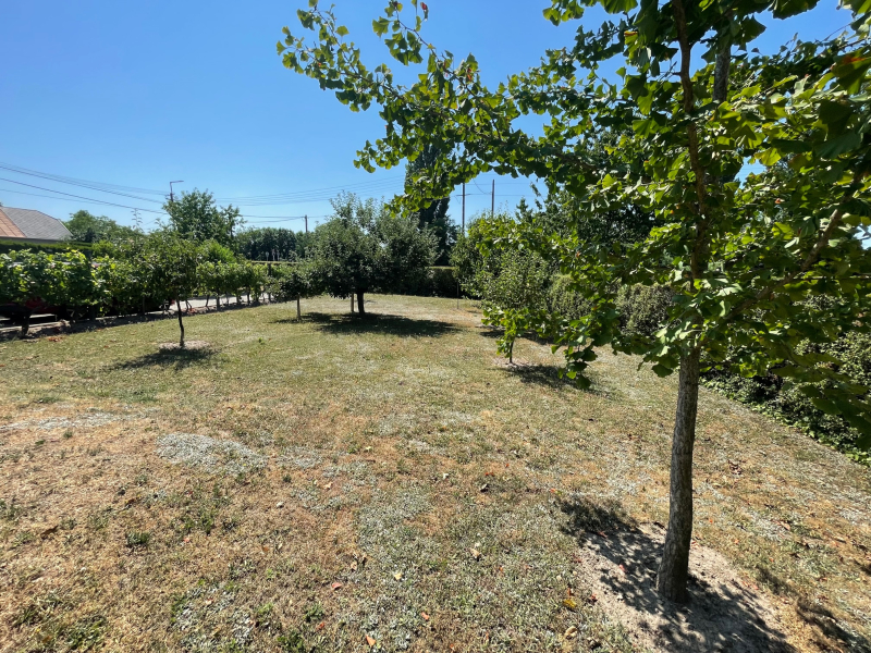 A saroktelek 1023 m2, utcafronti szélessége 28 m. A kert rendezett, ápolt. Számos termő gyümölcsfa és szőlőtőke található benne (alma, őszi- és sárgabarack, dió, szilva, cseresznye). Az udvaron több személyautó parkolása biztosított. Egy fatároló is elhelyezésre került.