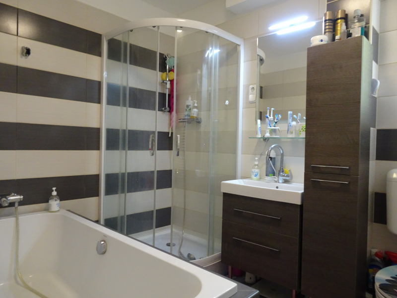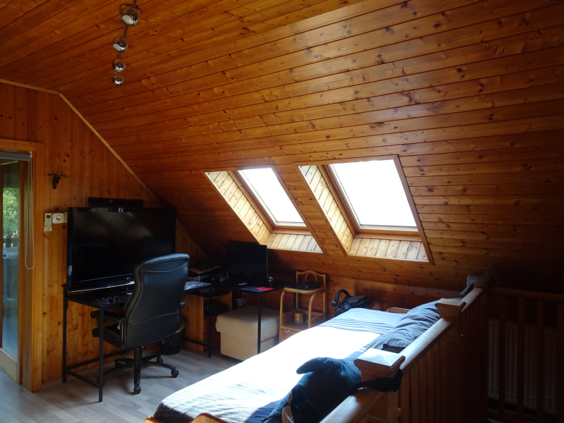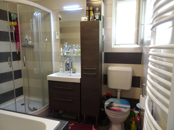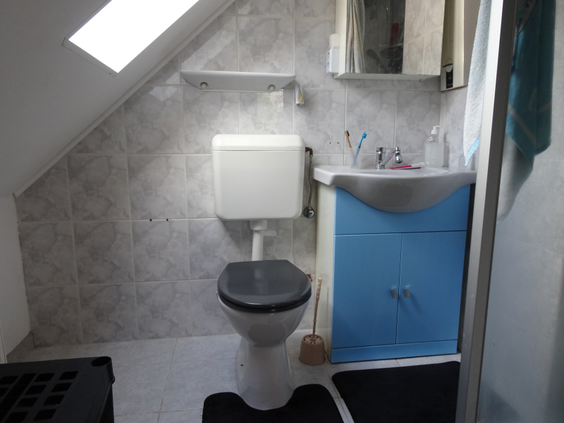 - a felső szinten (tetőtérben): egy hálószoba, egy közlekedő és egy zuhanyzós fürdőszoba + WC