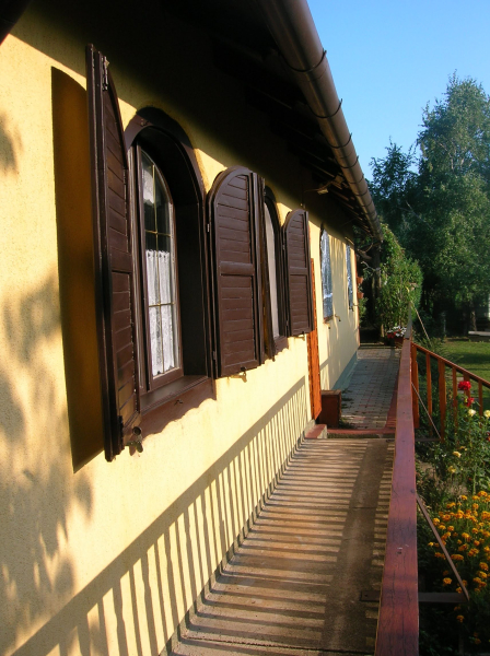 Két külön bejáratú lakrész került kialakításra, amelynek egyik szárnya hagyományos téglaépítésű, a másik oldal könnyűszerkezetes. A két lakrész természetesen egybe is nyitható. A tető zsindelyfedésű, a homlokzat 8 cm-es hőszigeteléssel ellátott. Nyílászárói fa gyártásúak, zsalugáterrel szereltek.