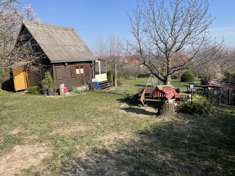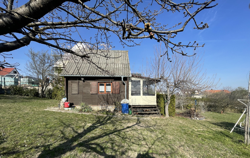 A telken jelenleg egy jó állapotú, kétszintes, összkomfortos, teraszos faház áll, amely az építkezés előkészítése során is használható.
