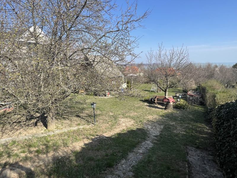 A telek enyhén lejtős adottsága lehetővé teszi, hogy a majdani otthon felső szintjéről zavartalan balatoni kilátás nyíljon. Egy jól megtervezett ház esetén ez a kilátás a mindennapok része lehet – a nappali, a terasz vagy a háló természetes kiterjesztéseként.