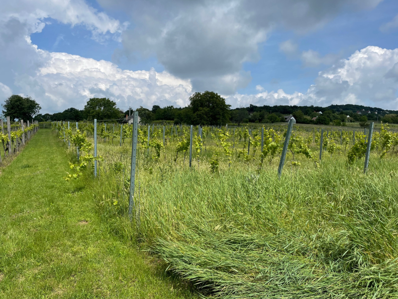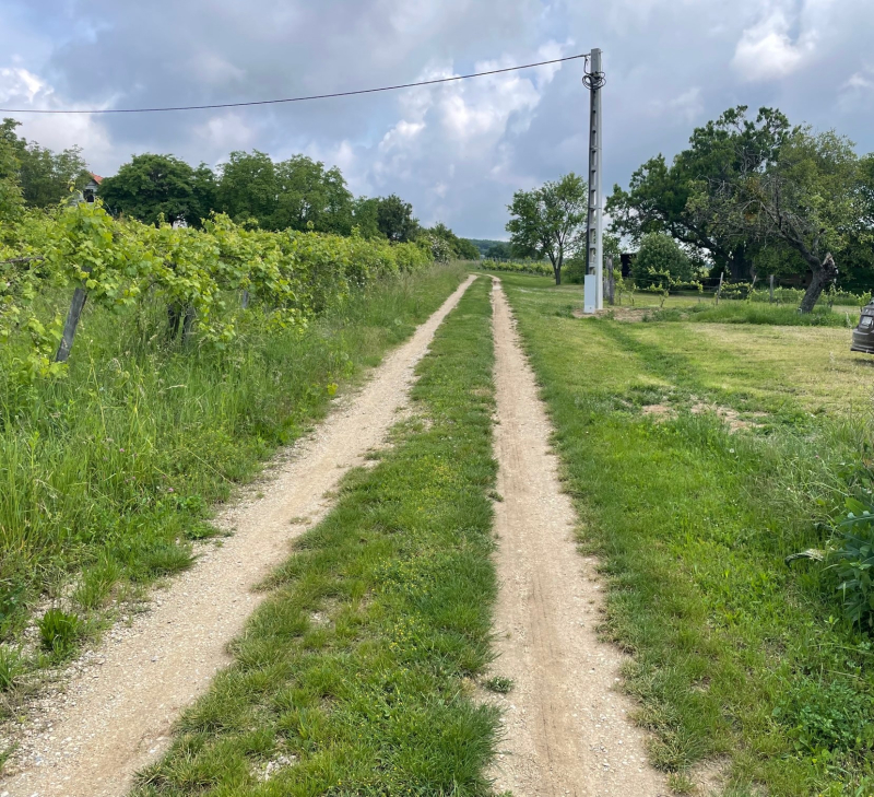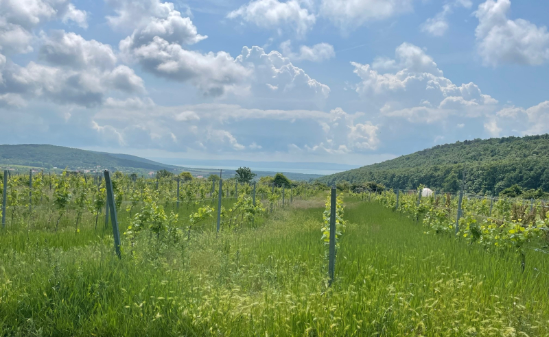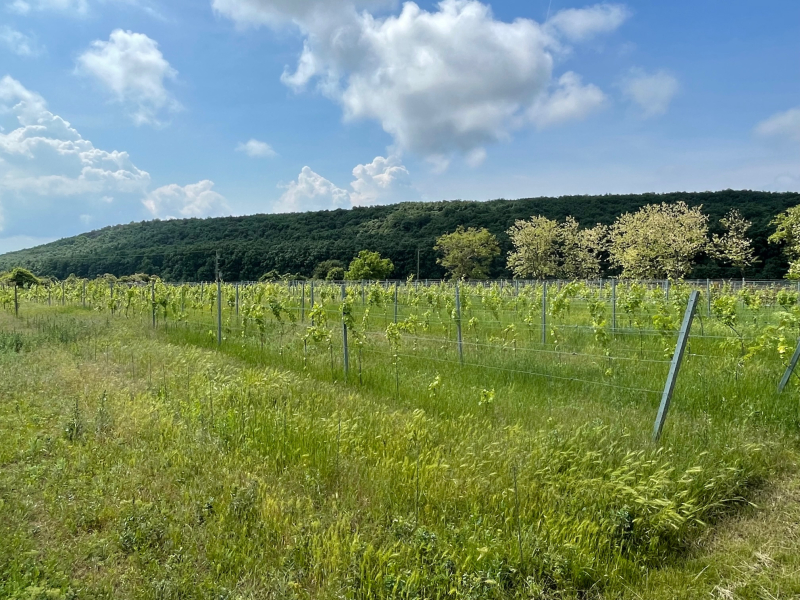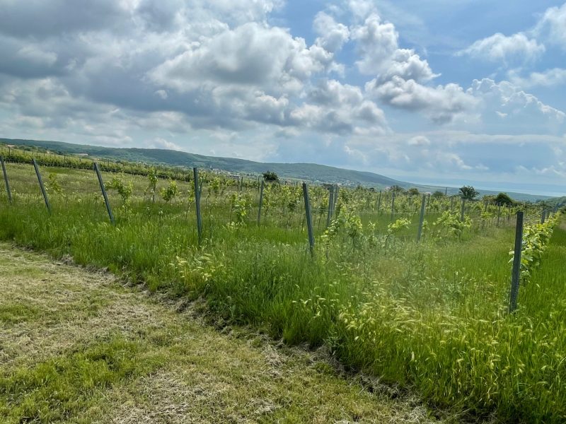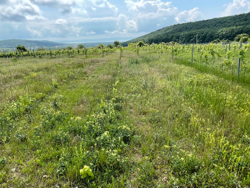 A terület fém támrendszerrel ellátott, új telepítésű olaszrizling fajtájú szőlővel telepítve.
