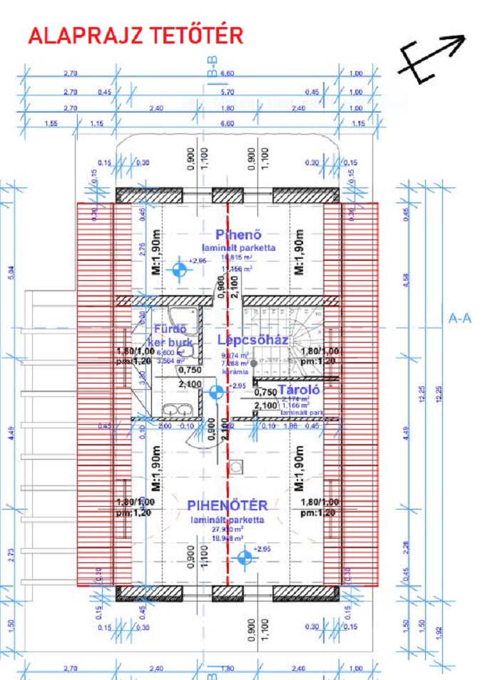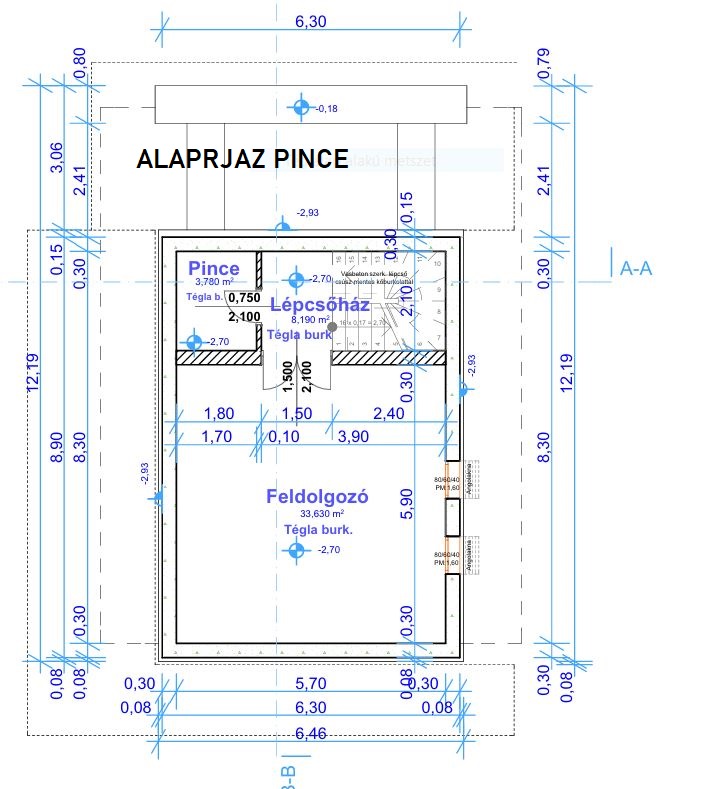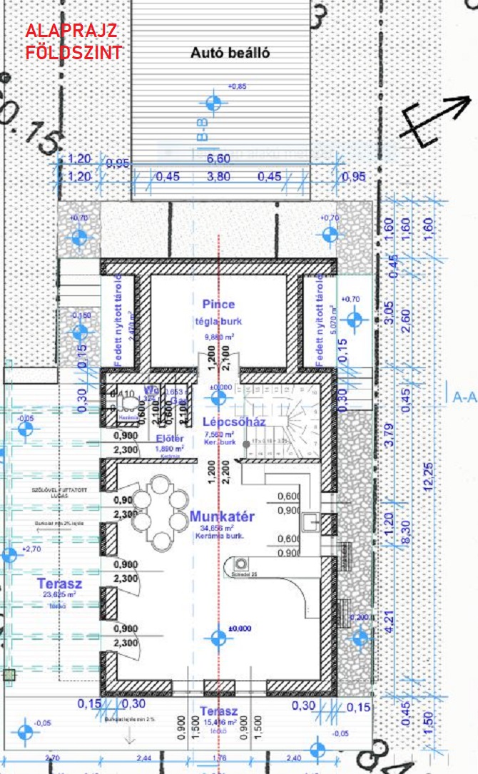 A tervezett gazdasági épület 146 m2 nettó alapterületű, háromszintes, pince + földszint + tetőtér kialakítású.
